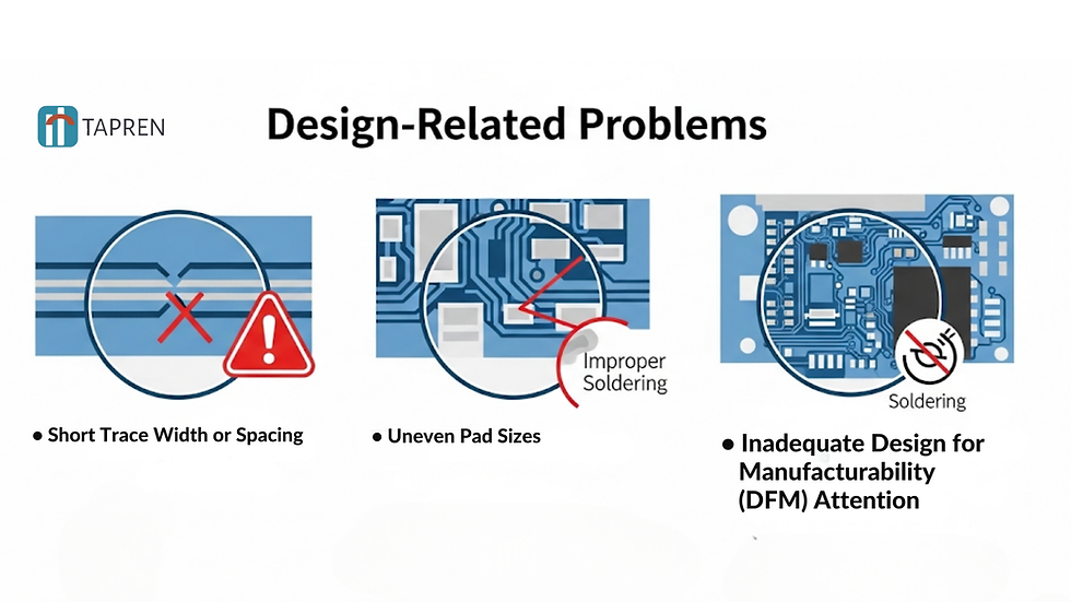 ● These problems may arise due to short trace width or spacing, which may lead to open circuits.